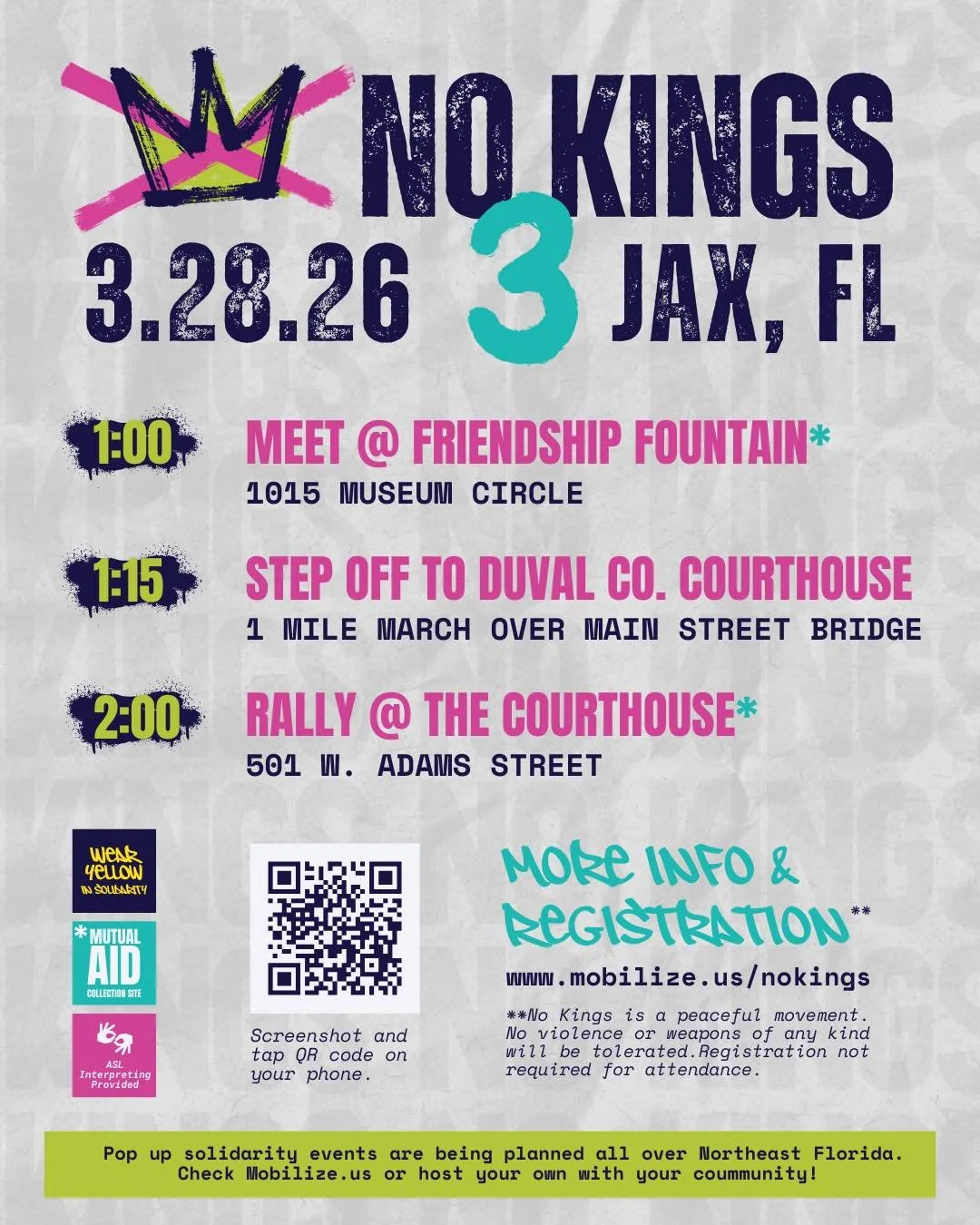 As anticipation grows across the country, organizers of No Kings 3 in Jacksonville have released additional details about the highly anticipated march and rally set. for this Saturday, March 28. Expected to be the largest mass action in city history, the day will bring together thousands for a full day of demonstrations, performances, and community speakers.